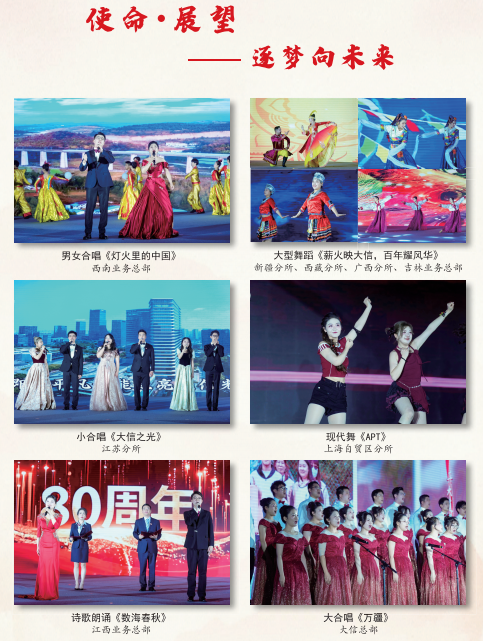 當晚舉辦的文藝晚會同樣精彩紛呈,本次演出分為“初心?啟航—薪火照征程”“傳承?聚力—奮進正當時”“使命?展望—逐夢向未來”三個篇章,涵蓋歌舞、情景劇、古箏重奏、詩歌朗誦等多元節目。節目既展現了大信人多才多藝的精神風貌,又緊扣行業特色與發展主題,同時傳遞家國情懷,為慶祝活動畫上圓滿句號。